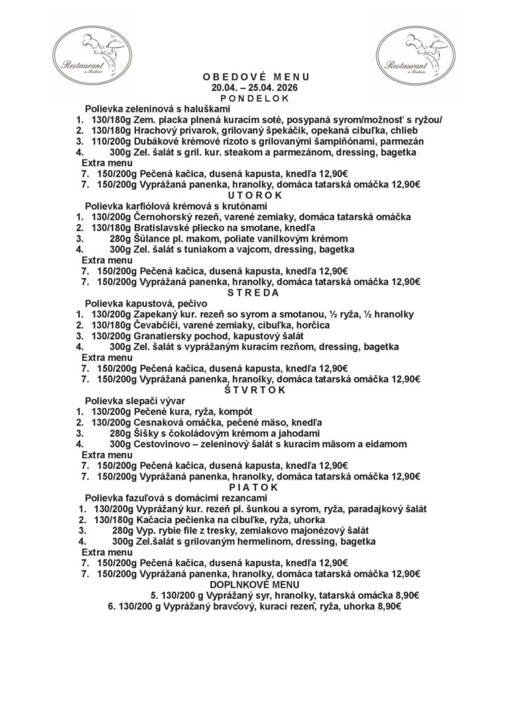 O B E D O V É M E N U 20.04. – 25.04. 2026